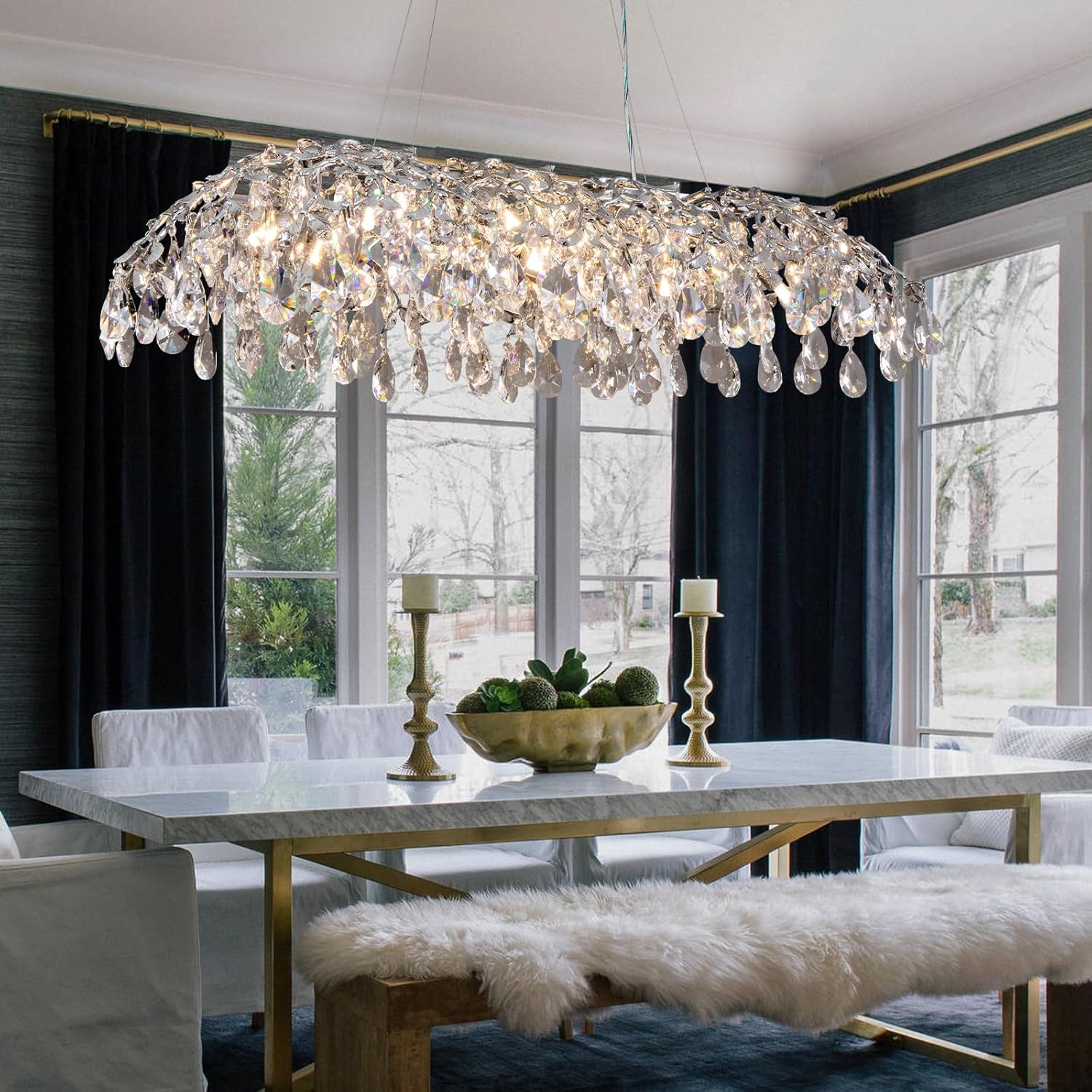 Modern Crystal Chandelier, 51'' Silver Chandeliers Tree Branch-Leaf Chandelier