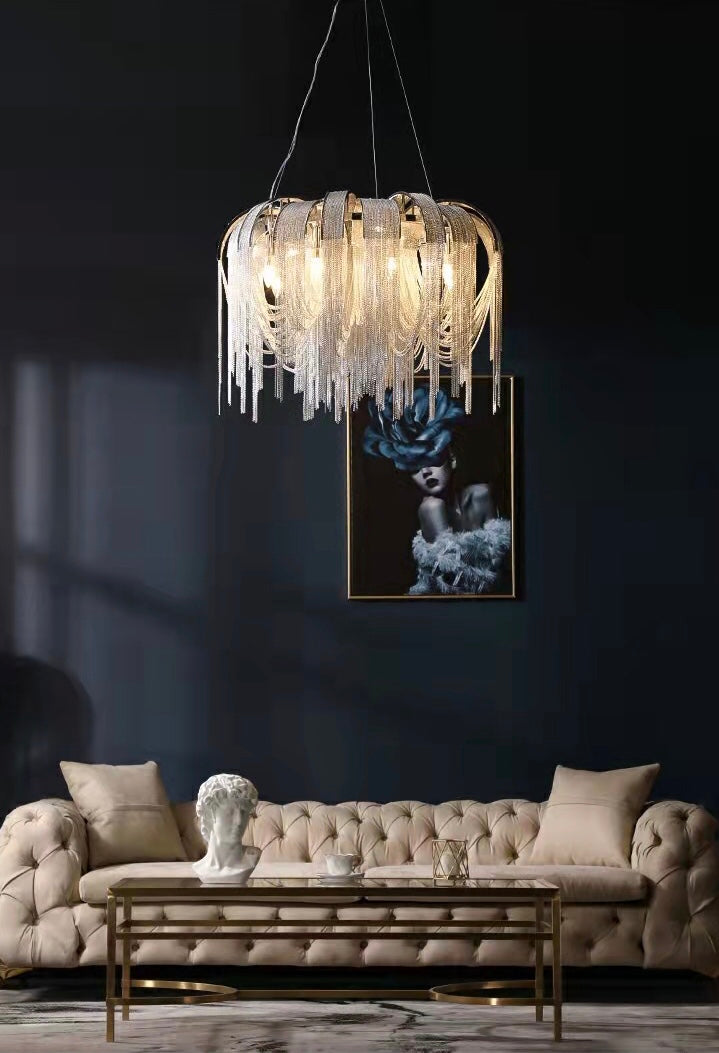 Luxury Chain Tassel Chandelier Romantic Italian Style Living Room Ceiling Fixture Modern Hall Staircases Decoration Light