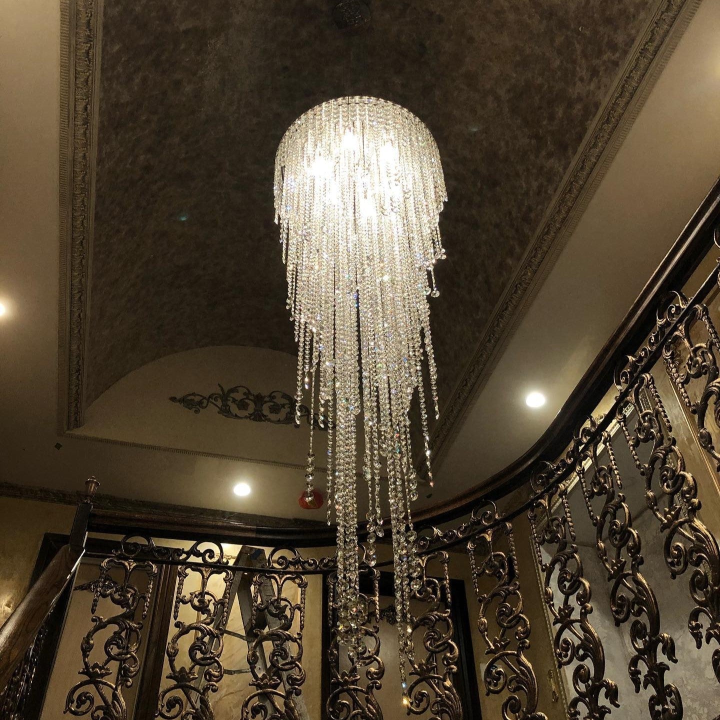 Extra Large Flush Mount Crystal Tassel Pendant Chandelier for Living Room/High-Ceiling Room/Foyer