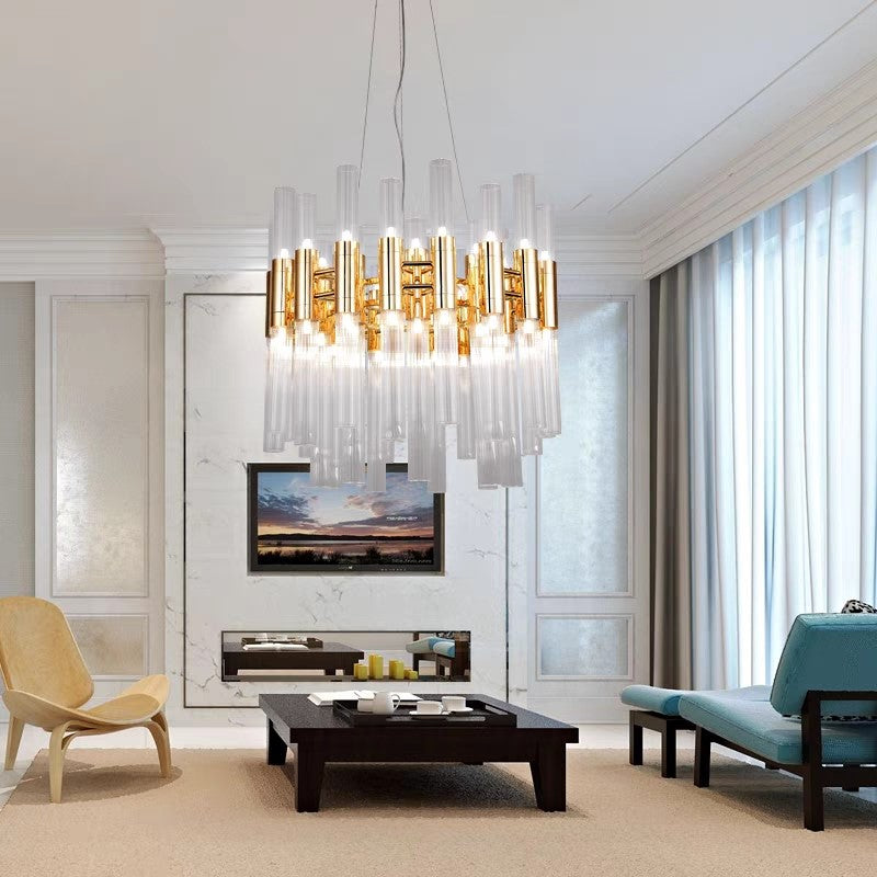 Extra Large Luxury Multi-tier Gold Pendant Glass Chandelier for Stairs/Large High-ceiling Room