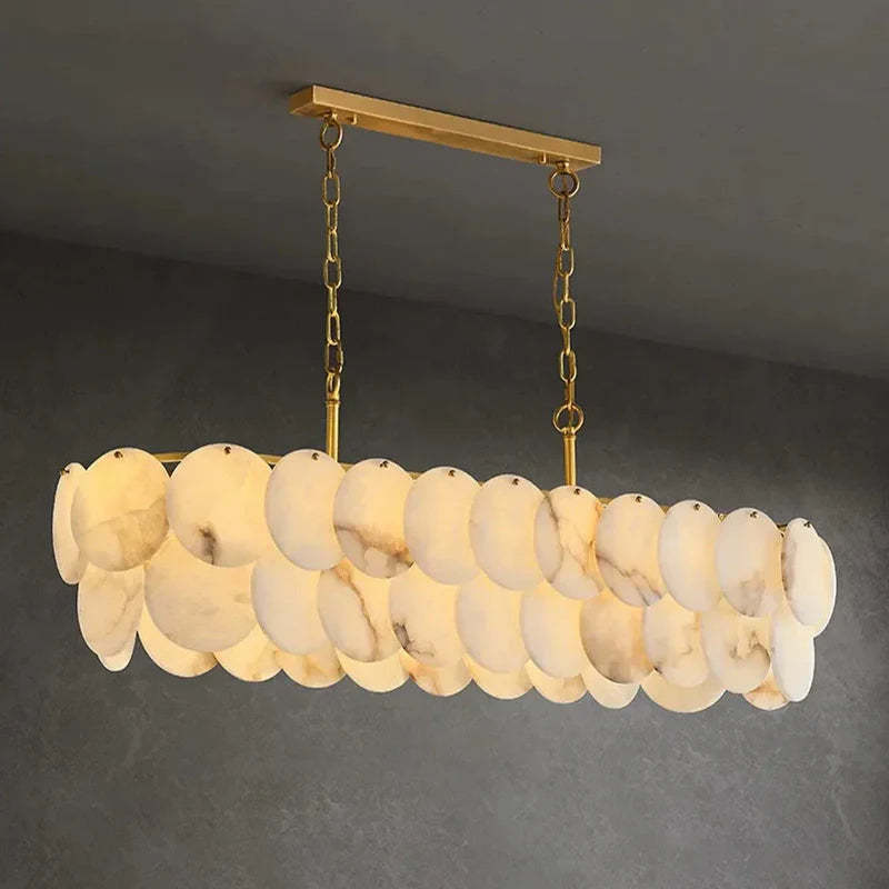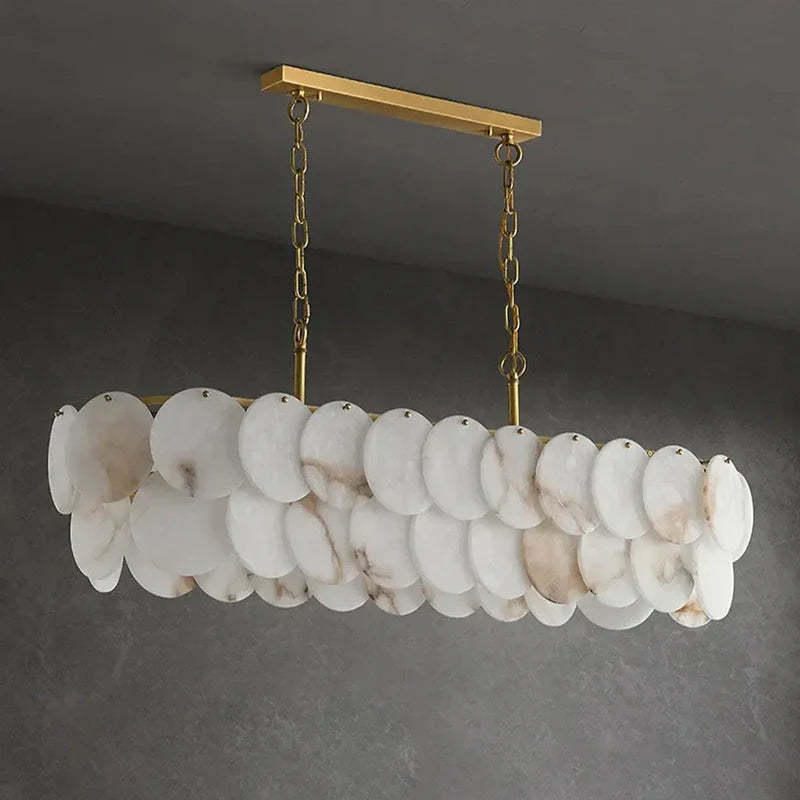Moonshade Marble Dining Room Chandelier, Linear Alabaster Chandelier