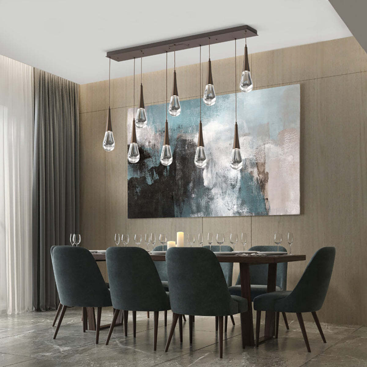 Rain LED Linear Chandelier For Living Room, Linear Glass Chandelier Over Dining Table